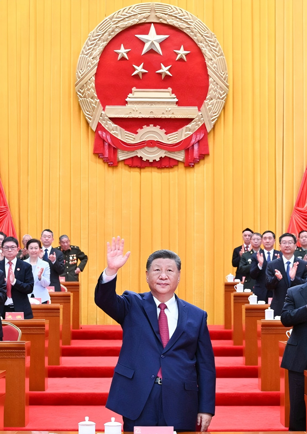 上午10時(shí)30分許,在歡快的樂曲聲中,習(xí)近平等領(lǐng)導(dǎo)同志走上主席臺(tái),全場(chǎng)響起長(zhǎng)時(shí)間的熱烈掌聲。
