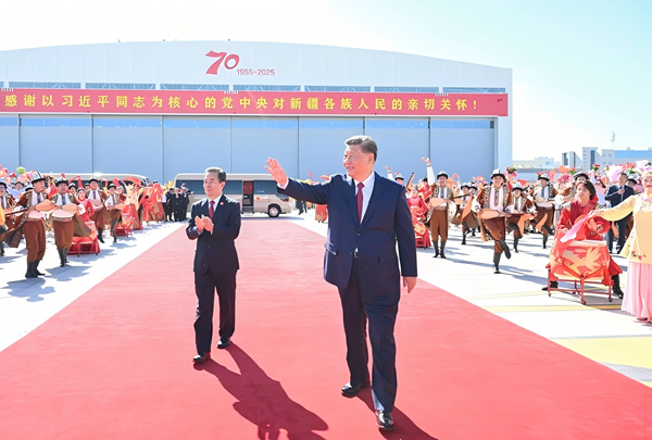 中共中央總書記、國家主席、中央軍委主席習近平在烏魯木齊出席新疆維吾爾自治區(qū)成立70周年慶祝活動后,25日乘專機返回北京。受習近平總書記囑托,以王滬寧為團長的中央代表團將于25日至28日在新疆各地看望慰問各族各界干部群眾。