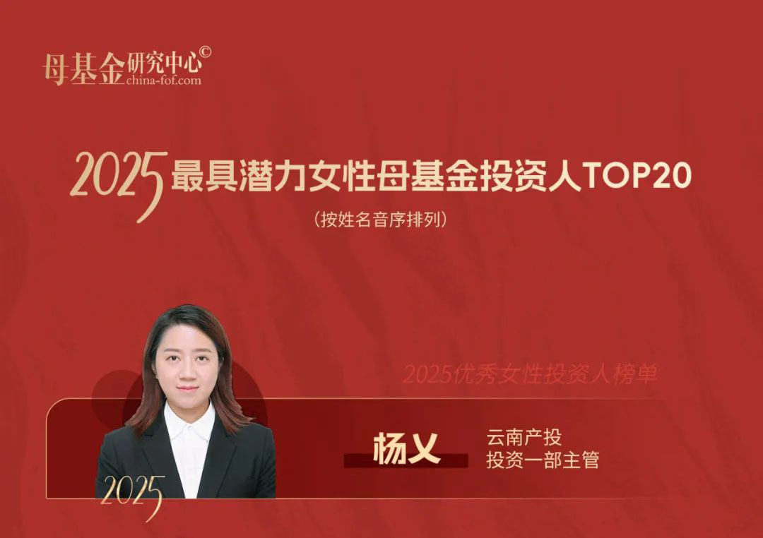 投資中的“她”力量|集團(tuán)旗下云南產(chǎn)投公司楊乂榮獲《2025最具潛力女性母基金投資人TOP20》