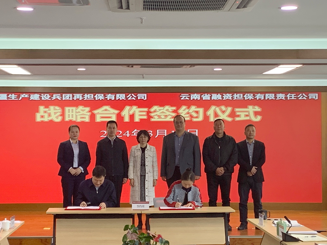 集團(tuán)所屬云南省融資擔(dān)保有限責(zé)任公司與新疆生產(chǎn)建設(shè)兵團(tuán)再擔(dān)保有限公司簽署戰(zhàn)略合作協(xié)議