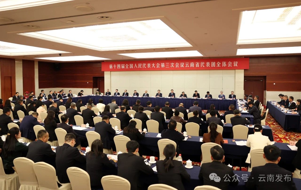 3月3日下午,出席第十四屆全國(guó)人民代表大會(huì)第三次會(huì)議的云南省代表團(tuán)舉行全體會(huì)議。