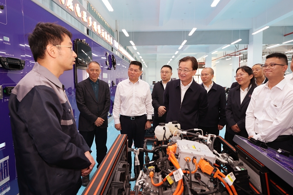 9月24日,王寧在昭通職業(yè)學(xué)院調(diào)研職業(yè)教育發(fā)展時,與智能制造學(xué)院新能源汽車教學(xué)實訓(xùn)室?guī)熒涣鳌?/span>