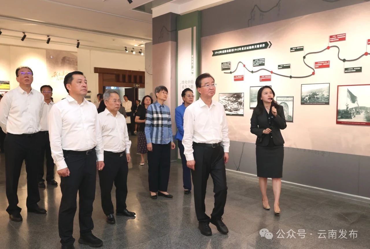 王寧等領(lǐng)導(dǎo)同志仔細(xì)參觀展覽,詳細(xì)詢(xún)問(wèn)檔案文獻(xiàn)背后的抗戰(zhàn)故事。王寧強(qiáng)調(diào),要深刻學(xué)習(xí)領(lǐng)悟習(xí)近平總書(shū)記關(guān)于中國(guó)人民抗日戰(zhàn)爭(zhēng)和世界反法西斯戰(zhàn)爭(zhēng)的重要論述精神;深刻感悟在艱苦卓絕的抗日戰(zhàn)爭(zhēng)中,中國(guó)共產(chǎn)黨高舉抗日民族統(tǒng)一戰(zhàn)線(xiàn)的旗幟,全體中華兒女為國(guó)家生存而戰(zhàn)、為民族復(fù)興而戰(zhàn)、為人類(lèi)正義而戰(zhàn)的雄壯史詩(shī);深刻認(rèn)識(shí)邊疆各族人民同仇敵愾、誓死筑路,為中國(guó)人民抗日戰(zhàn)爭(zhēng)、世界反法西斯戰(zhàn)爭(zhēng)勝利作出的重大貢獻(xiàn)。要大力宣傳弘揚(yáng)偉大愛(ài)國(guó)主義精神,精心組織好系列紀(jì)念活動(dòng),講好抗戰(zhàn)故事,把偉大抗戰(zhàn)精神一代代傳下去。要用好用活紅色檔案資源,挖掘好滇緬公路、西南聯(lián)大等云南抗戰(zhàn)歷史資源,推進(jìn)紅色檔案資源展示進(jìn)校園、進(jìn)機(jī)關(guān)、進(jìn)企業(yè)、進(jìn)社區(qū)。要認(rèn)真組織好觀展工作,賡續(xù)紅色血脈,汲取奮進(jìn)力量,堅(jiān)定理想信念,激勵(lì)各族干部群眾團(tuán)結(jié)奮進(jìn)新時(shí)代,開(kāi)創(chuàng)云南發(fā)展新局面。