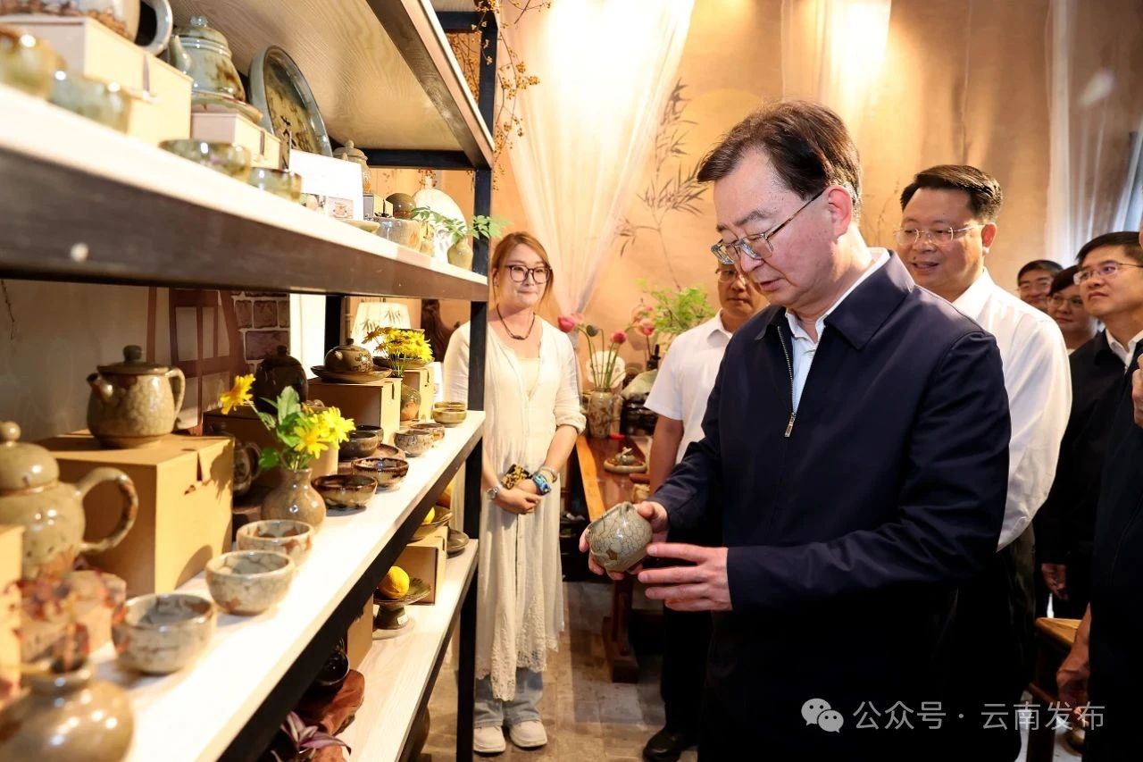 歷史文化名城建水,古城、古村與紫陶文化交相輝映。王寧來到建水古城、團山古村調(diào)研文旅融合發(fā)展,與當(dāng)?shù)馗刹?、村民、商戶深入交流,強調(diào)要全面貫徹落實習(xí)近平文化思想,切實保護利用好古城古村、傳統(tǒng)街區(qū)、古建筑、重要文化地標等,創(chuàng)新思路舉措,堅持政府引導(dǎo)、社會參與,形成可持續(xù)投入、建設(shè)、發(fā)展的模式。王寧指出,云南不僅自然生態(tài)獨具魅力,深厚的歷史文化也讓人心向往之,要把文化保護傳承有機融入旅游旅居、鄉(xiāng)村振興,為地方發(fā)展賦能、為群眾增收添力。到千年臨安古城淘一把紫陶壺是很多游客的念想。王寧強調(diào),既要傳承傳統(tǒng)工藝,又要學(xué)習(xí)運用現(xiàn)代設(shè)計,與時俱進將建水紫陶推向更加廣闊的國內(nèi)外市場,煥發(fā)新的活力。
