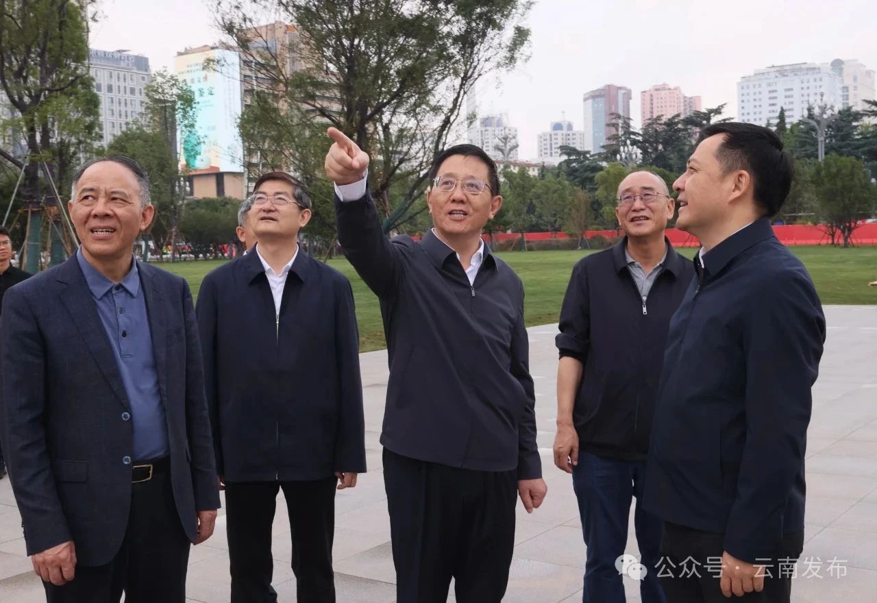 王予波在昆明市東風(fēng)廣場(chǎng)察看恢復(fù)工程效果及周邊環(huán)境風(fēng)貌。