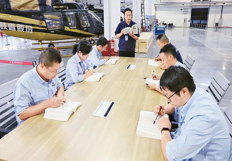 2022年9月9日,陜西直升機股份有限公司第三黨支部在公司產(chǎn)業(yè)園生產(chǎn)制造區(qū)讀書角進行《習近平談治國理政》第四卷專題學習。陜西日報記者 張辰/攝