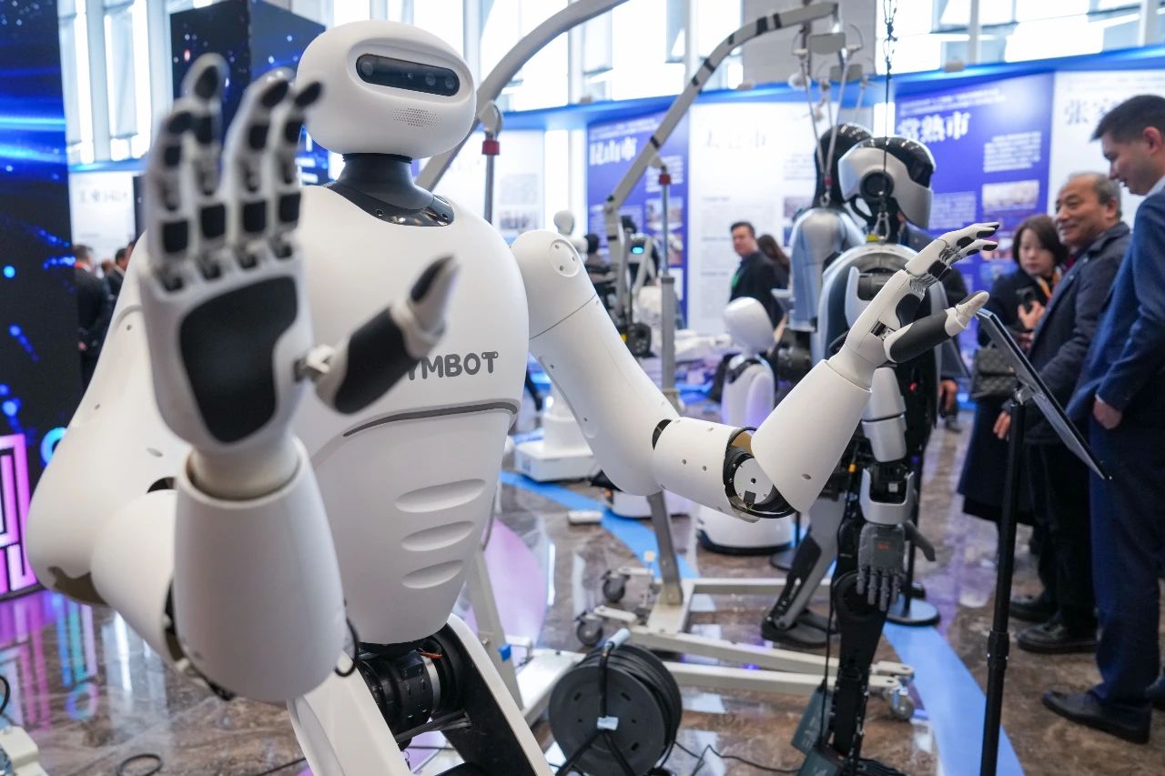 2025年蘇州市“人工智能+”創(chuàng)新發(fā)展推進大會暨人工智能賦能新型工業(yè)化深度行(蘇州站)活動于2月14日舉行,本次活動以“共啟AI+新質(zhì)賦未來”為主題,集中展示蘇州人工智能領域發(fā)展情況。圖為在活動現(xiàn)場展示的人形機器人。新華社記者 李博/攝