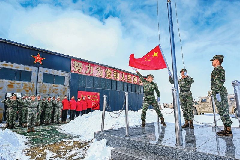 思政課不僅應(yīng)該在課堂上講,也應(yīng)該在社會生活中來講。圖為2025年4月29日,中國人民大學師生赴西藏自治區(qū)日喀則市開展“大國邊疆”思政調(diào)研,走進“高原戍邊模范營”哨所,與官兵共同舉行升旗儀式。 北京市委教育工委供圖