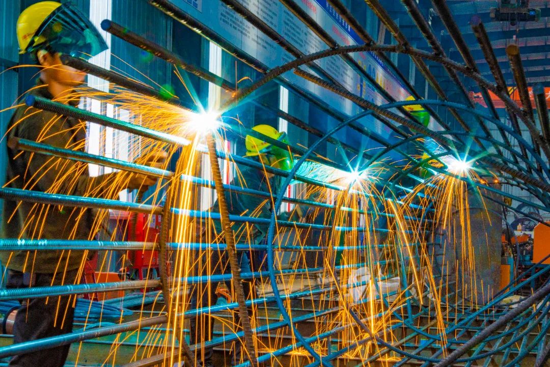 公路特別是高速公路是現(xiàn)代化基礎設施體系的重要組成部分,是經(jīng)濟社會發(fā)展的重要支撐。圖為2023年9月14日,湖北武漢新港高速公路雙柳長江大橋施工現(xiàn)場,建設者正在進行鋼筋籠焊接施工。人民圖片 金偉/攝