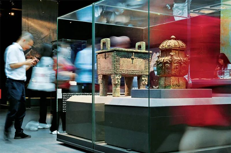 中國(guó)考古博物館是中國(guó)歷史研究院下設(shè)的國(guó)家級(jí)專(zhuān)業(yè)考古博物館,以考古出土文物和珍貴古籍文獻(xiàn)為依托,致力于展示與傳播中華優(yōu)秀傳統(tǒng)文化。圖為2023年9月15日,觀眾在館內(nèi)參觀珍貴文物展品。 新華社記者 李賀/攝