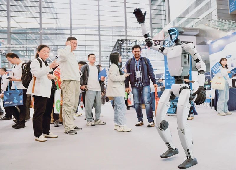 2025年4月9日,第十三屆中國(guó)電子信息博覽會(huì)在深圳會(huì)展中心(福田)開(kāi)幕,展會(huì)聚焦智能終端、光電顯示、人工智能、大數(shù)據(jù)存儲(chǔ)、基礎(chǔ)元器件、低空經(jīng)濟(jì)等前沿重點(diǎn)領(lǐng)域,吸引了超千家企業(yè)參展。圖為開(kāi)幕當(dāng)日,觀眾在觀看人形機(jī)器人展示。新華社記者 梁旭/攝