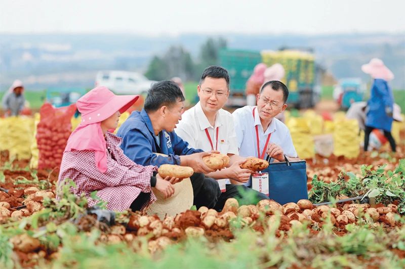 調(diào)查研究是謀事之基、成事之道。圖為2025年5月14日,云南省曲靖市陸良縣紀(jì)檢監(jiān)察干部在小百戶鎮(zhèn)普樂(lè)村走訪馬鈴薯種植戶,了解鄉(xiāng)村振興產(chǎn)業(yè)發(fā)展相關(guān)情況。 人民圖片 王勇/攝