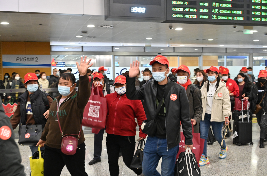 2023年1月30日,云南大理的務(wù)工人員抵達(dá)上海浦東國(guó)際機(jī)場(chǎng)。圖源:視覺中國(guó)