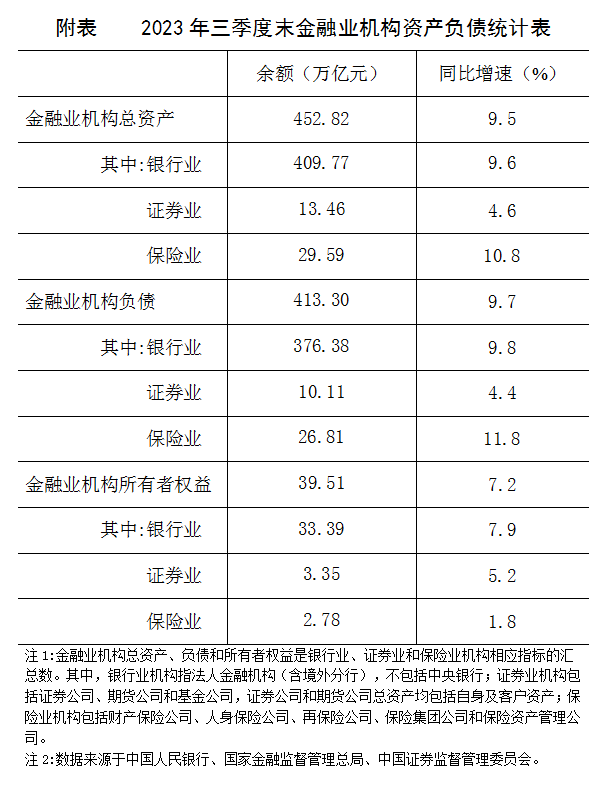 2023年三季度末金融業(yè)機構總資產(chǎn)452.82萬億元
