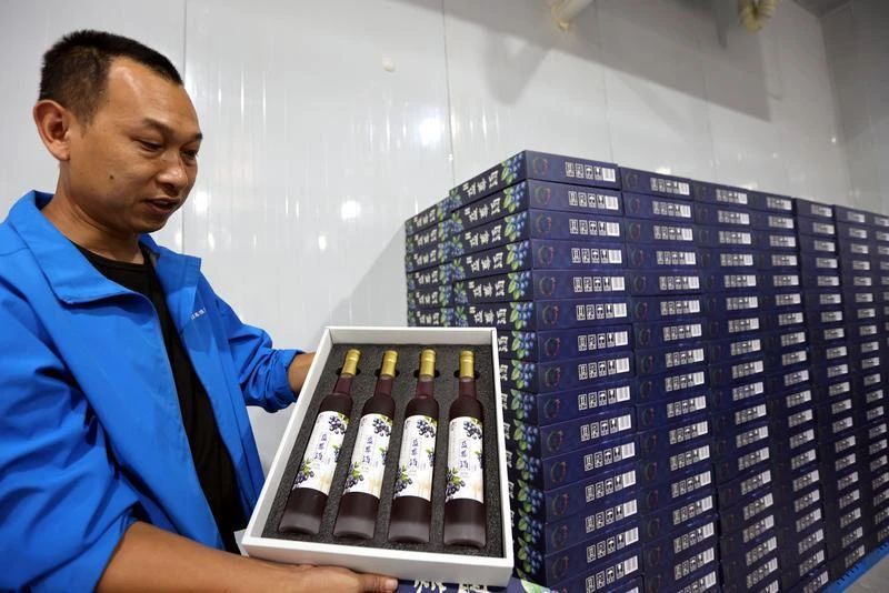 蒙自飛花釀果酒廠生產(chǎn)的藍莓果酒。黃興能 攝