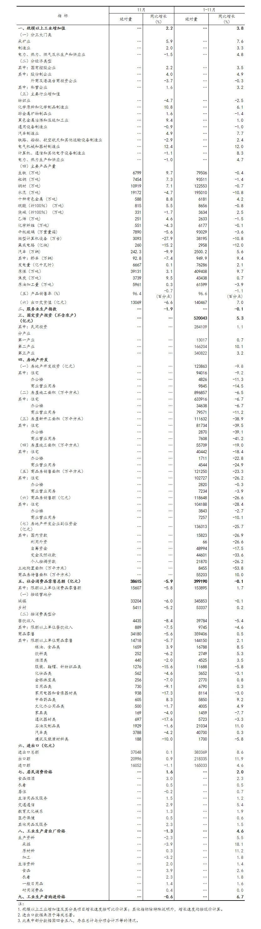 ?(1)規(guī)模以上工業(yè)增加值及其分類項(xiàng)目增長速度按可比價(jià)計(jì)算,為實(shí)際增長速度;其他指標(biāo)除特殊說明外,均按現(xiàn)價(jià)計(jì)算,為名義增長速度。